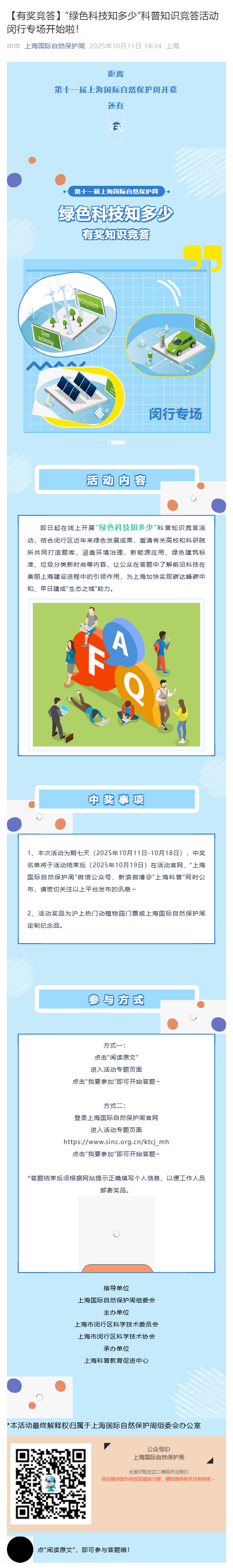 【有奖竞答】“绿色科技知多少”科普知识竞答活动闵行专场开始啦!