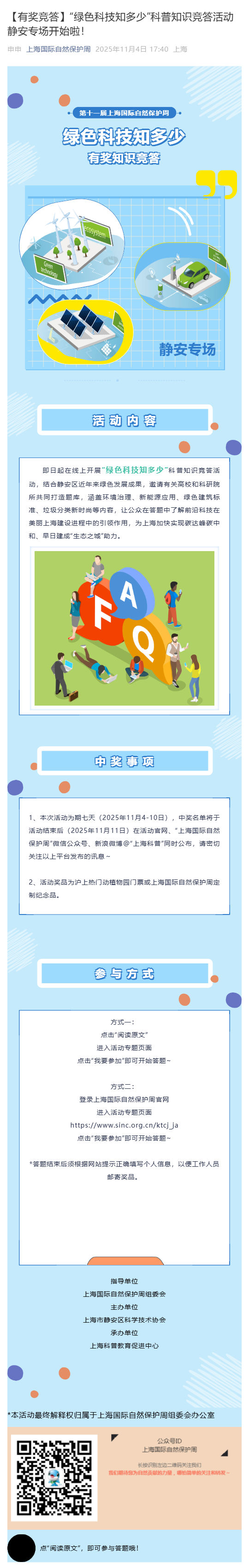【有奖竞答】“绿色科技知多少”科普知识竞答活动静安专场开始啦!