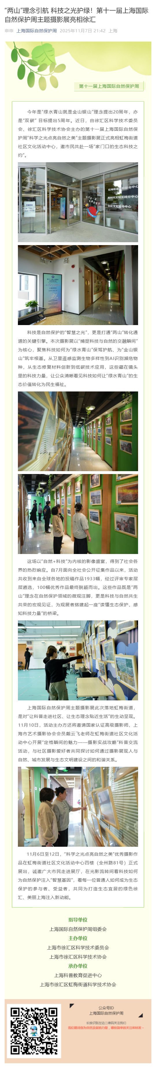 “两山”理念引航 科技之光护绿!第十一届上海国际自然保护周主题摄影展亮相徐汇