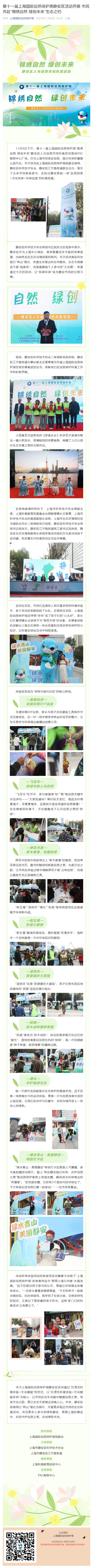 第十一届上海国际自然保护周静安区活动开展 市民共赴“锦绣自然 绿创未来”生态之约